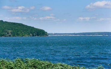 Днестровский мелководный залив (Овидиево озеро), шириной от 4 до 12 км, глубиной около 2,6 м, проникает в сушу на 41 км и занимает большую приустьевую часть Днестра. От Черного моря